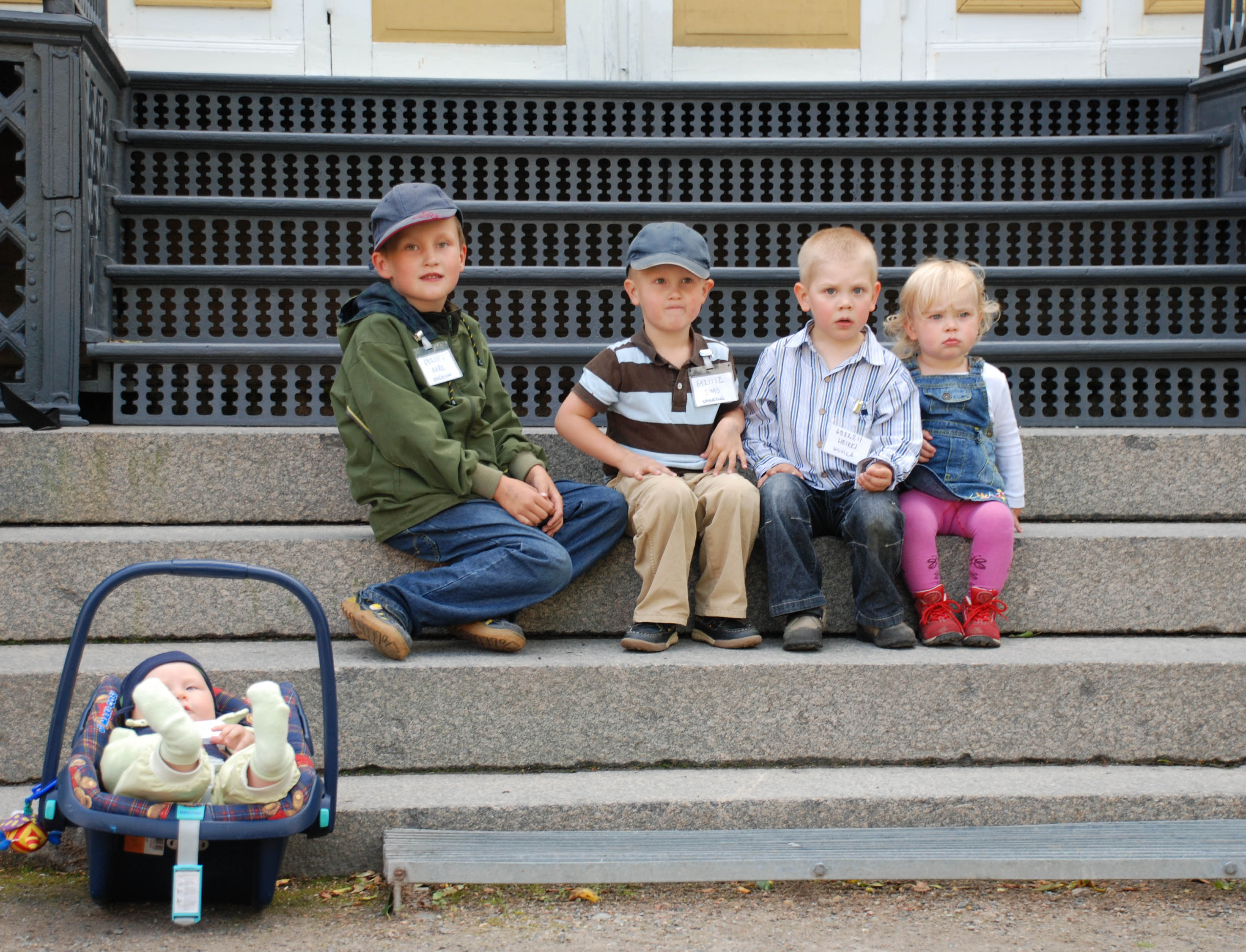 Kuvassa lapset oikealta lukien on Nella & Heikki Huvila ja Simo & Aaro & Jaakko Kangasmaa