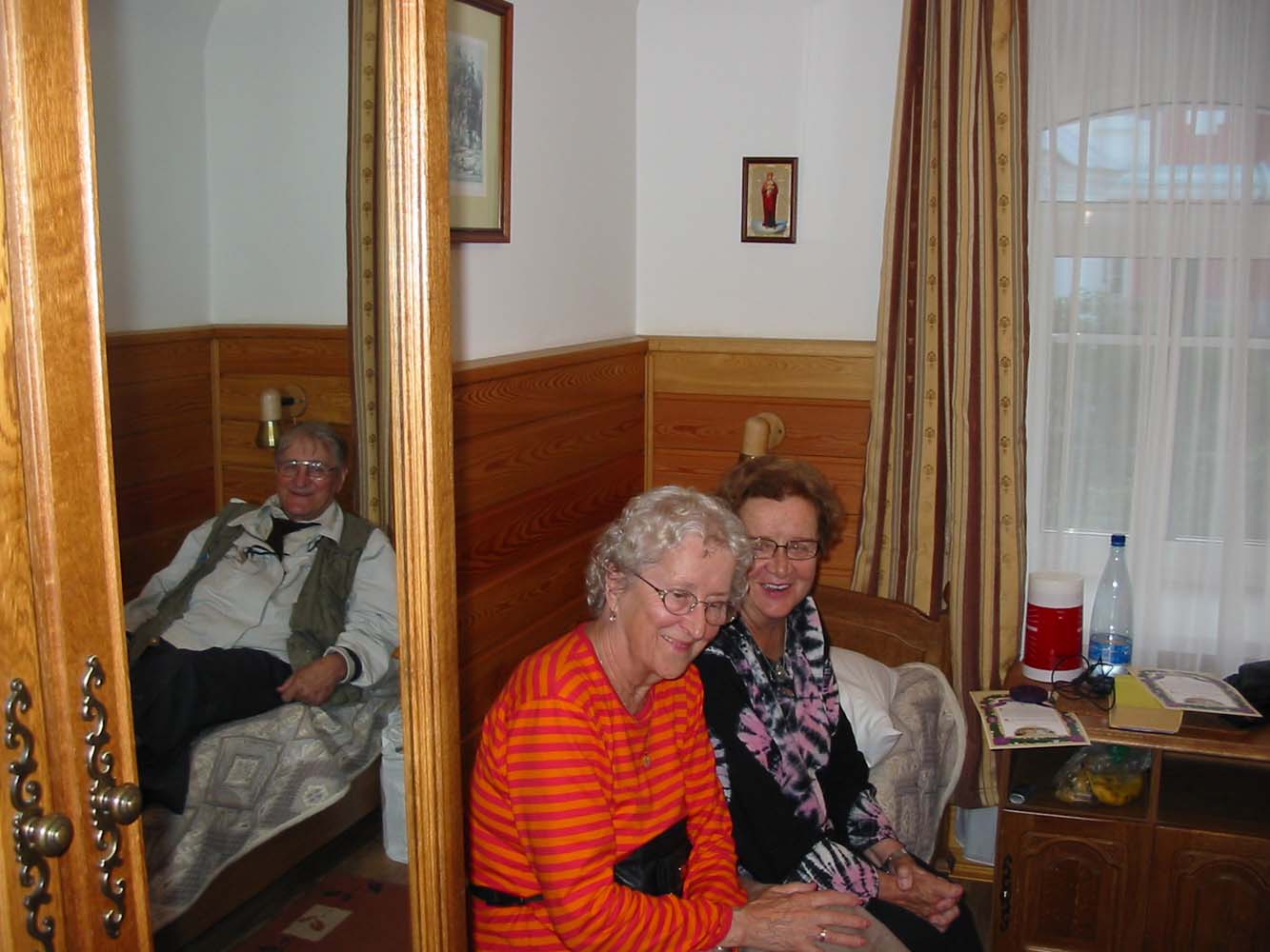 Luostarin hotellihuoneessa Alma ja Yrjö Kohosen jälkeläiset.